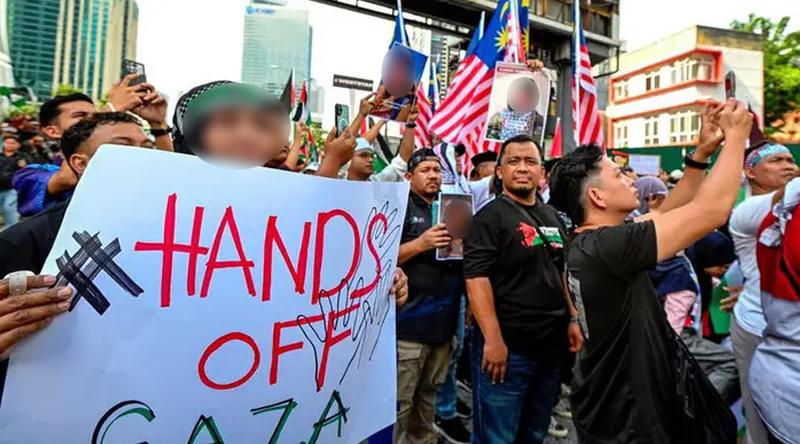 ফিলিস্তিনের প্রতি সংহতি প্রকাশ করে মালয়েশিয়ার কুয়ালালামপুরে মার্কিন দূতাবাসের সামনে হাজারো মানুষ জড়ো হয়ে সমাবেশ করেছেন।