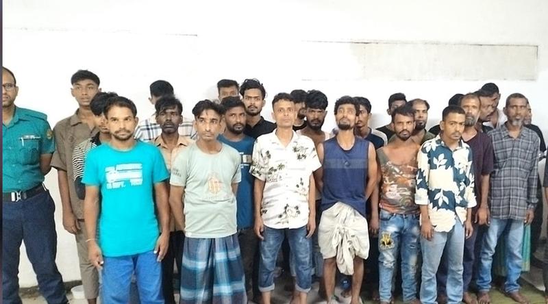 গ্রেফতার ব্যক্তিরা হলেন: হীরা (১৯), রফিক (২১), আব্দুর রহমান (৩৯), নাবিদ হাসান চয়ন (২৬), খোকন (৩১), মনসুর (৩৫), জুয়েল (৩২), সানজু (২২), মিলন (৪২), শাওন (৩৬), নোয়াজ শরীফ (২৮), সেলিম (৩৪), আসাদুজ্জামান ইমন (২৩), আনোয়ার (৩৬), সজল (৩০), বরকত গাজী (২৮), জুয়েল (৩৮), আরমান (৩০), বাদল (৩৮), কোরবান (২৮), নয়ন (২৭), মাসরুফ (২৩), আল আমিন (২৭), রাকিব (১৮), মিলন (২৫), ওয়াজিদ (৩৬), এরশাদ (২৫), ছালাম ওরফে সামাদ (৩৭) ও দিলসার (৩০)।