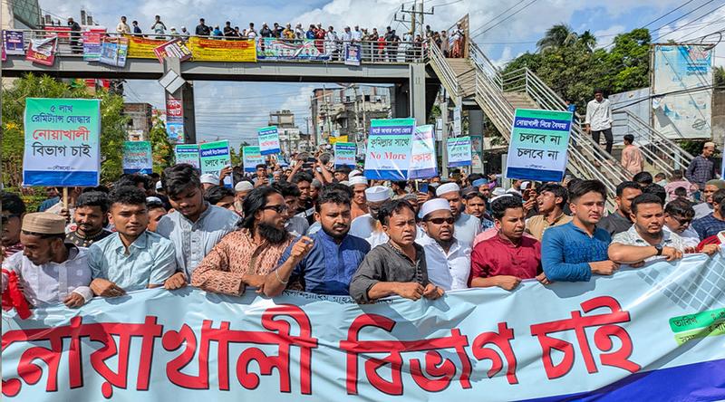 নোয়াখালী জেলাকে স্বতন্ত্র প্রশাসনিক বিভাগ ঘোষণার দাবিতে বিক্ষোভে উত্তাল হয়ে উঠেছে জেলা শহর মাইজদী। সাধারণ জনতা মিছিল ও ব্লকেড কর্মসূচি পালন করেছে।