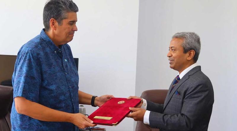 ওশেনিয়ার দ্বীপরাষ্ট্র পালাউয়ের রাষ্ট্রপতি সুরাঙ্গেল এস হুইপস জুনিয়রের কাছে পরিচয়পত্র পেশ করেছেন দেশটিতে নিযুক্ত বাংলাদেশের অনাবাসিক রাষ্ট্রদূত মুহম্মদ সারওয়ার মাহমুদ।