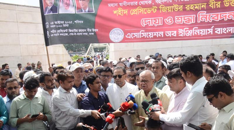 শনিবার (০৪ অক্টোবর) শেরেবাংলা নগরে বিএনপির প্রতিষ্ঠাতা শহীদ রাষ্ট্রপতি জিয়াউর রহমানের কবরে শ্রদ্ধা নিবেদন শেষে সাংবাদিকদের তিনি এসব কথা বলেন। অ্যাসোসিয়েশন অব ইঞ্জিনিয়ার্স বাংলাদেশের (অ্যাব) উদ্যোগে জিয়ার কবরে শ্রদ্ধা নিবেদন করা হয়।