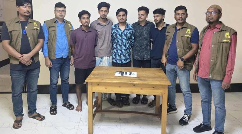 আটকরা হলেন শ্রীপুরের টেপিরবাড়ি এলাকার ইমরান হোসেন (২২), গাজীপুর সদরের ভবানীপুর এলাকার আশিকুল ইসলাম (১৯), গাজীপুর মহানগরীর লাগালিয়া এলকার মেহেদী হাসান ইমন (২৩), শ্রীপুরের মুলাইদ এলাকার শাহারিয়ার রহমান সাদাফ (২২) ও কেওয়া পশ্চিমখন্ড দারোগারচালা এলাকার মোজাম্মেল হাসান রোমান (২২)।