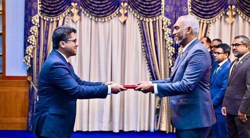 মালদ্বীপের প্রেসিডেন্ট ড. মোহাম্মদ মুইজ্জুর কাছে পরিচয়পত্র পেশ করেছেন নবনিযুক্ত বাংলাদেশের হাইকমিশনার ড. মো. নাজমুল ইসলাম।