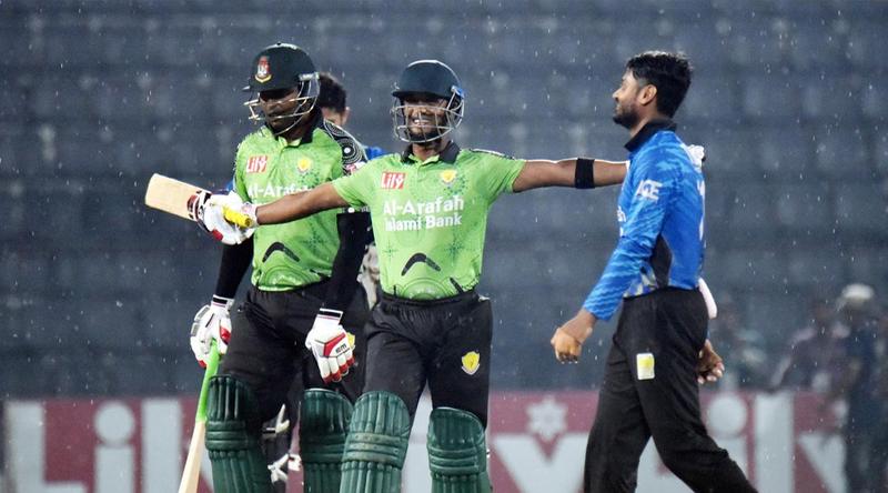 ১৬৮ রান তাড়া করতে নেমে ৭৬ রানের অবিচ্ছিন্ন জুটিতে ইনিংসে শুভসূচনা করে রংপুর। ওপেনার জাহিদ জাভেদ ৩৫ রানে আউট হলে প্রথম উইকেট হারায় রংপুর। তবে আরেক ওপেনার নাসির হোসেন হাফ-সেঞ্চুরির স্বাদ পান। দলীয় ১১৮ রানে আউট হন নাসির। ৪টি চার ও ৩টি ছক্কায় ৪১ বলে ৫৪ রান করেন তিনি।