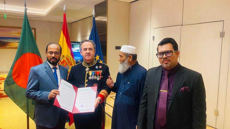 স্পেনের প্রধানমন্ত্রী পেদ্রো সানচেজ-এর উদ্দেশে স্পেনের জাতীয় দিবস উপলক্ষে বাংলাদেশ জামায়াতে ইসলামীর আমির ডা. শফিকুর রহমানের একটি শুভেচ্ছা বার্তা রাষ্ট্রদূত গ্যাব্রিয়েল সিস্তিয়াগা ওচোয়া ডি চিনচেক্রের কাছে হস্তান্তর করেন এড. মতিউর রহমান আকন্দ।