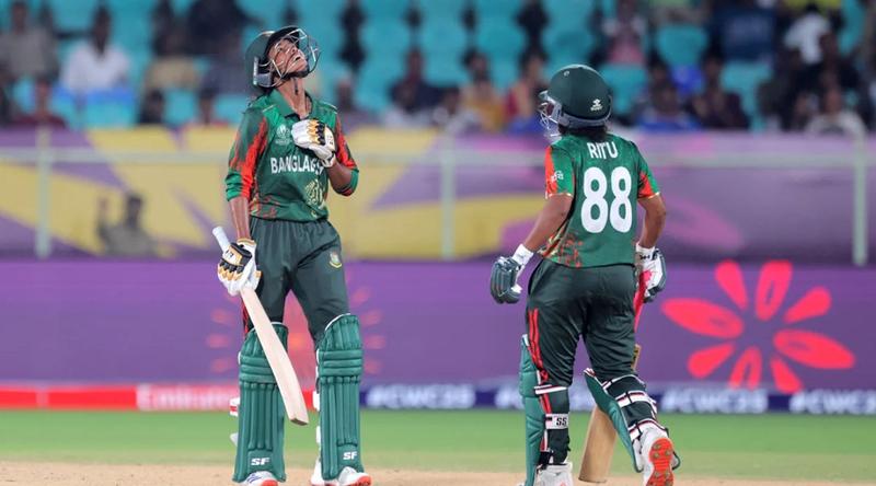 বিশাখাপত্তমে টস জিতে আগে ব্যাট করতে নেমে নির্ধারিত ৫০ ওভারে ৬ উইকেট হারিয়ে ২৩২ রান করেছে বাংলাদেশ। যা নারী বিশ্বকাপে বাংলাদেশের সর্বোচ্চ সংগ্রহের রেকর্ড। দলের হয়ে অপরাজিত ফিফটি করেছেন স্বর্ণা।