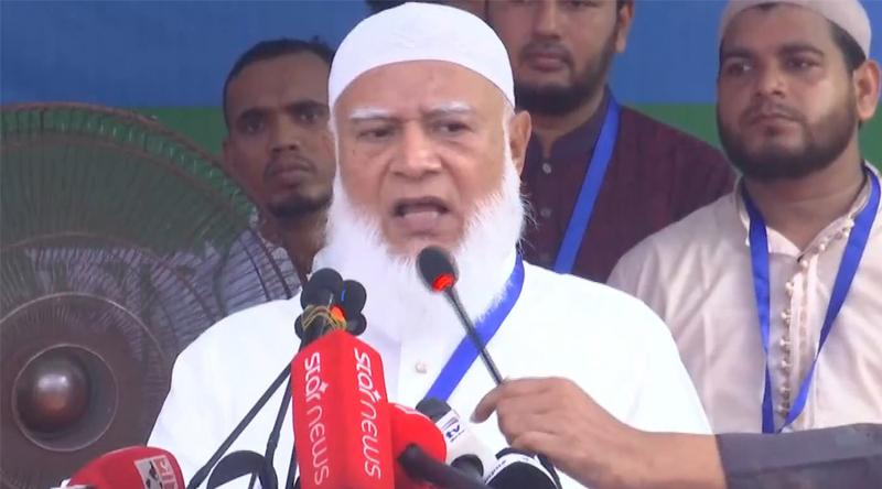 মিরপুর ১০-এর সেনপাড়া পর্বতা ঈদগাহ মাঠে শ্রমিক সমাবেশে জামায়াতে ইসলামীর আমির ডা. শফিকুর রহমান বক্তব্য দিচ্ছেন।