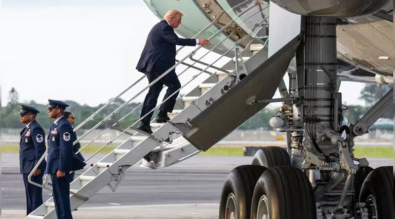 রবিবার নিরাপত্তার কারণে ট্রাম্পকে তুলনামূলক ছোট সিঁড়ি দিয়ে বিমানে উঠতে হয়েছে বলেও খবর পাওয়া গেছে।