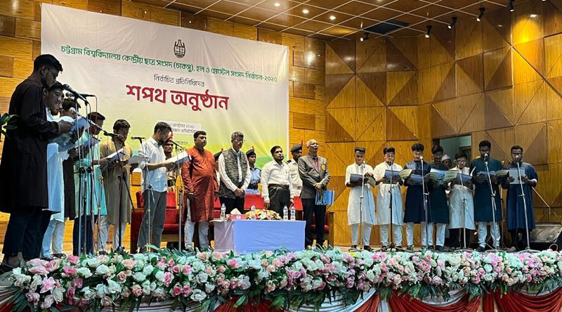 চট্টগ্রাম বিশ্ববিদ্যালয়ের কেন্দ্রীয় ছাত্র সংসদ (চাকসু), হল সংসদ ও হোস্টেল সংসদের নির্বাচিত প্রার্থীদের শপথ গ্রহণ অনুষ্ঠিত হয়েছে।
