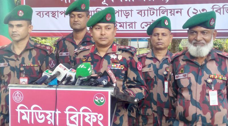সংবাদ সম্মেলনে ২৩ বিজিবির সহকারী পরিচালক আবুল লেইচসহ বিভিন্ন স্তরের ঊর্ধ্বতন কর্মকর্তারা উপস্থিত ছিলেন।