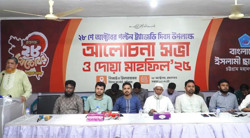 অনুষ্ঠানে প্রধান অতিথি হিসেবে উপস্থিত ছিলেন চট্টগ্রাম মহানগরী জামায়াতের ভারপ্রাপ্ত আমির পরিবেশবিদ নজরুল ইসলাম, সভাপতিত্ব করেন ছাত্রশিবির চট্টগ্রাম মহানগর উত্তরের সভাপতি তানজির হোসেন জুয়েল। পরিবেশবিদ নজরুল ইসলাম বলেন, বাংলাদেশের অগ্রগতিকে থামিয়ে দেওয়ার দিন হলো ২৮ অক্টোবর। এ ঘটনা কখনো ভুলে যাওয়ার নয়। ৩৬ জুলাইয়ের পরেও আজ ভারতীয় হ্যাজিমনি বাংলাদেশে প্রভাব বিস্তারের চেষ্টা চালিয়ে যাচ্ছে।