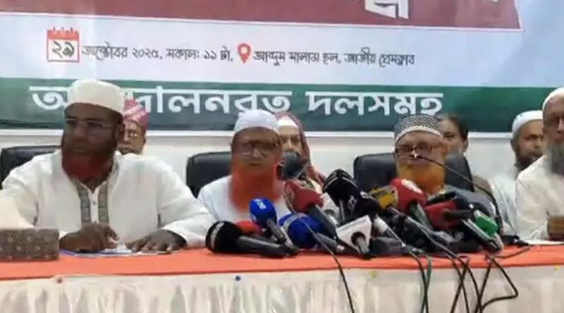 বুধবার (২৯ অক্টোবর) বেলা ১১টায় জাতীয় প্রেস ক্লাবে ইসলামী দলগুলোর আয়োজনে যৌথ সংবাদ সম্মেলনে এ কর্মসূচি ঘোষণা করেন ইসলামী আন্দোলন বাংলাদেশের মহাসচিব অধ্যক্ষ ইউনূস আহমাদ।