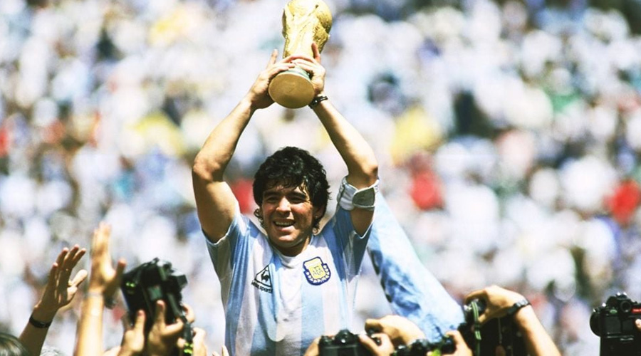 স্পেনে অনুষ্ঠিত ১৯৮২ বিশ্বকাপে আর্জেন্টিনার হয়ে প্রথমবার বিশ্বকাপ খেলতে নামেন ম্যারাডোনা। তবে সেবার চিরপ্রতিদ্বন্দ্বী ব্রাজিলের বিপক্ষে লাল কার্ড দেখে শেষ হয় তার আসর। কিন্তু পরের বিশ্বকাপ ১৯৮৬ সালে মেক্সিকোতে ইতিহাস রচনা করেন তিনি। পুরো বিশ্বকে তার দুর্দান্ত নৈপুণ্য ও নেতৃত্বে তাক লাগিয়ে দেন। নিজ দেশকে দ্বিতীয়বার বিশ্ব চ্যাম্পিয়ন করেন ম্যারাডোনা। এরপর আর পেছনে ফিরে তাকাননি ফুটবল জাদুকর।