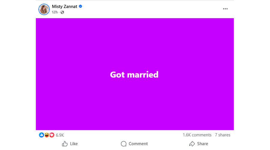 বৃহস্পতিবার (৩০ অক্টোবর) তিনি তার রিলেশনশিপ স্ট্যাটাস পরিবর্তন করে লেখেন, ‘গট ম্যারিড’।