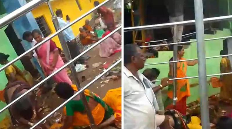 সামাজিক মাধ্যমে প্রকাশিত ভিডিওতে দেখা গেছে, হাজার হাজার মানুষে ভিড়ে মন্দিরটিতে দম বন্ধ পরিস্থিতি সৃষ্টি হয়েছে। তখন নিজেদের বাঁচানোর চেষ্টা করেন নারীরা। এ সময় তাদের হাতে পূজার ঝুড়ি ছিল।