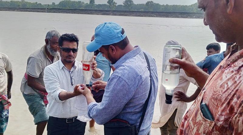 বাপেক্সের দলটি গ্যাস ডিটেক্টরের মাধ্যমে পরীক্ষা চালিয়ে মিথেন গ্যাসের উপস্থিতি শনাক্ত করে। পরে তারা বুদবুদের উৎসস্থল থেকে তিন বোতল গ্যাস সংগ্রহ করেন। দলটি নদীর তীর ও সংলগ্ন পানিতে অন্তত ৫০টি স্থান থেকে গ্যাসের বুদবুদ উঠতে দেখেন। এরপর প্রায় ১০০ ফুট দূরে নদীর অপর পাড়েও নৌকাযোগে গিয়ে তারা কয়েকটি স্থানে একই ধরনের বুদবুদ লক্ষ্য করেন।