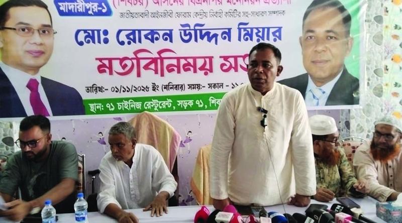 এমন মন্তব্য করেছেন বাংলাদেশ জাতীয়তাবাদী আইনজীবী ফোরামের কেন্দ্রীয় নির্বাহী কমিটির সহ-সাধারণ সম্পাদক এবং মাদারীপুর-১ (শিবচর) আসনের ধানের শীষের মনোনয়নপ্রত্যাশী আইনজীবী মো. রোকনউদ্দীন মিয়া।
