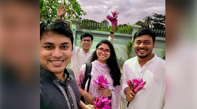 যুগ্ম আহ্বায়ক ডা. তাসনিম জারা নিজের ভেরিফায়েড ফেসবুক আইডিতে শাপলা কলি ফুল হাতে নিয়ে হাস্যোজ্জল ছবি শেয়ার করেছেন। তার সঙ্গে ছবিতে রয়েছেন মুখ্য সমন্বয়ক নাসীরুদ্দীন পাটওয়ারী ও যুগ্ম আহ্বায়ক ডা. খালেদ সাইফুল্লাহ।