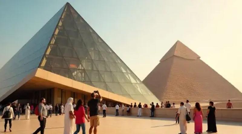 গিজা পিরামিড থেকে দুই কিলোমিটার দূরে অবস্থিত এই জাদুঘরটি ৪ লাখ ৯০ হাজার বর্গ মিটার জুড়ে বিস্তৃত। দর্শনার্থীরা পাঁচতলা কাঁচের সম্মুখভাগের মাধ্যমে পিরামিডগুলো দেখতে পারেন।