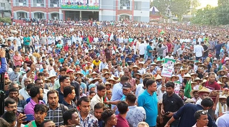 এর আগে, দুপুরের পর থেকেই স্কুল মাঠে নেতাকর্মীদের ঢল নামে। ধানের শীষের স্লোগান, মিছিল ও পতাকায় মুখরিত হয়ে ওঠে পুরো মাঠ। যা বিকেল গড়ানোর সঙ্গে সঙ্গে সমাবেশস্থল পরিণত হয় জনসমুদ্রে।
