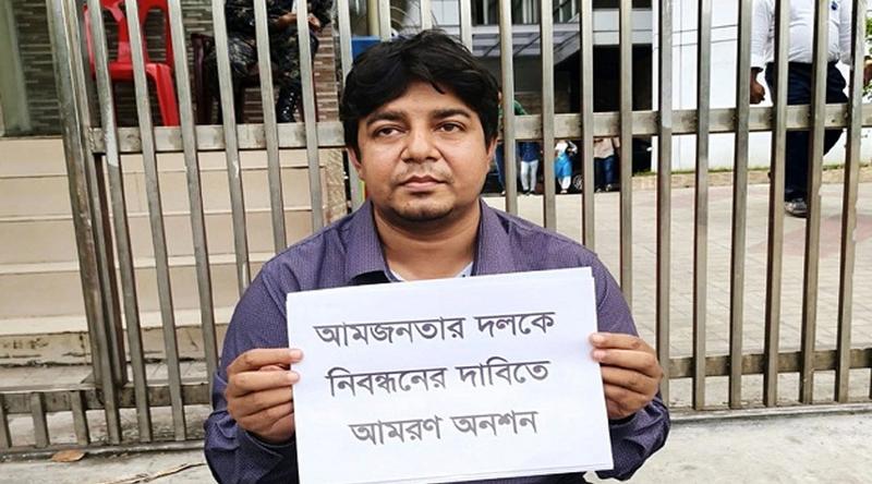 রাজনৈতিক দল হিসেবে নিবন্ধন পাওয়ার জন্য নির্বাচন কমিশনের মূল ফটকের সামনে তিন দিন ধরে আমরণ অনশন কর্মসূচি করে আসছেন আমজনতার দলের সাধারণ সম্পাদক তারেক রহমান। গতকাল শুক্রবার ছুটির দিনও অনশন থেকে সরে যাননি তিনি।