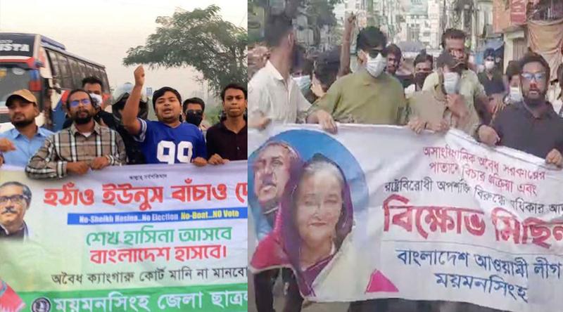 সোমবার (১০ নভেম্বর) সকালে ঢাকা-ময়মনসিংহ মহাসড়কে নগরের দিঘারকান্দা এলাকায় নিষিদ্ধ ছাত্রলীগ ও দুপুর ২টার দিকে সাংগঠনিক কার্যক্রম নিষিদ্ধ থাকা আওয়ামী লীগের ব্যানারে মিছিলটি হয়। আওয়ামী লীগের ব্যানারে মিছিলটিতে নিষিদ্ধ ছাত্রলীগের নেতাকর্মীকেই দেখা গেছে।