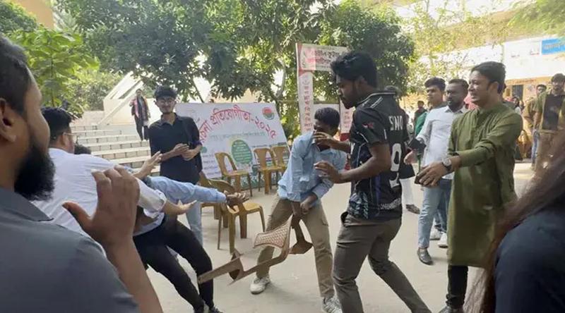 শাখা ছাত্রদলের আহ্বায়ক মেহেদী হাসান হিমেল বলেন, ‘আমরা ঘটনাস্থলে ছিলাম। দুই পক্ষকে সামলানোর চেষ্টা করেছি। পরে শিক্ষকদের সঙ্গে বসে সমঝোতা হয়েছে।’