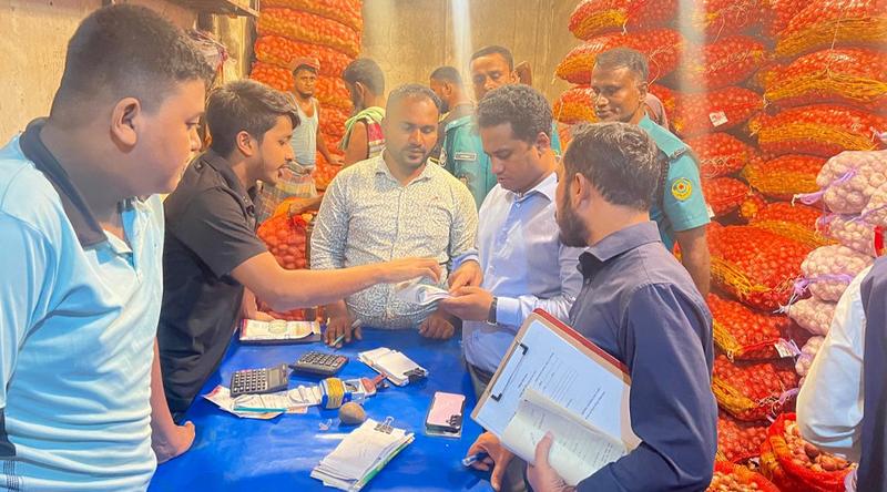 অন্যদিকে একই দিন খাতুনগঞ্জ পাইকারি বাজারে পেঁয়াজের বিভিন্ন আড়তে মনিটরিং অভিযান চালায় জেলা প্রশাসন ও কৃষি বিপণন অধিদপ্তরের যৌথ দল। দলের নেতৃত্বে ছিলেন জেলা প্রশাসনের সহকারী কমিশনার ও নির্বাহী ম্যাজিস্ট্রেট শিফাত বিনতে আরা। এ সময় আড়তগুলোর মূল্য তালিকা ও ক্রয়-বিক্রয় রশিদ যাচাই করা হয় এবং ব্যবসায়ীদের নিয়ম মেনে ব্যবসা পরিচালনার নির্দেশনা দেওয়া হয়। ক্রয় রশিদ সংরক্ষণ না করা ও লেবেলবিহীন পণ্য বিক্রির অভিযোগে ৫টি মামলা দায়ের এবং ৫ ব্যবসায়ীকে অর্থদণ্ড দেওয়া হয়।