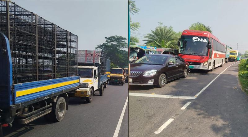 কার্যক্রম নিষিদ্ধ ঘোষিত আওয়ামী লীগের ডাকা ঢাকা লকডাউন কর্মসূচির অংশ হিসেবে বৃহস্পতিবার (১৩ নভেম্বর) সকাল সাড়ে ৬টা থেকে ছাত্রলীগ ও আওয়ামী লীগের নেতাকর্মীরা গাছের গুঁড়ি ফেলে এবং টায়ারে আগুন জ্বালিয়ে মহাসড়ক অবরোধ করলে এ পরিস্থিতি তৈরি হয়।