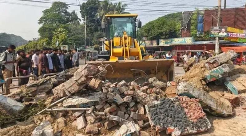 ঝিনাইদহে শেখ মুজিবের ‘এক তর্জনী’ স্তম্ভ গুঁড়িয়ে দিয়েছে ছাত্র-জনতা