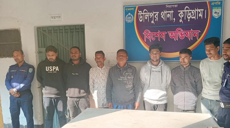 এছাড়া উলিপুর উপজেলায় রাস্তায় টায়ার জ্বালিয়ে আগুন লাগানো, ভাঙচুর ও জনসাধারণের জানমালের ক্ষতি করার প্রস্তুতির সময় আরও ৭ জনকে হাতেনাতে আটক করে উলিপুর থানা পুলিশ। তারা হলেন- উলিপুর উপজেলা নিষিদ্ধ সংগঠন ছাত্রলীগের সাংগঠনিক সম্পাদক আসিফ, দুর্গাপুর ইউনিয়ন শাখা ছাত্রলীগের যুগ্ম আহ্বায়ক ও চাঁপাইনবাবগঞ্জ পলিটেকনিক ইনস্টিটিউট শাখা ছাত্রলীগের সহসভাপতি রুদ্র, দুর্গাপুর ইউনিয়ন ছাত্রলীগের আশিক, শাহীন আলম সম্রাট, উলিপুর উপজেলা আওয়ামী লীগের ব্রহ্মপুত্র ভাঙন থেকে হাতিয়া বাঁচাও কমিটির সভাপতি বিএম আব্দুল ওহাব শাহ, ছাত্রলীগের কর্মী জাহিদ হাসান নিশান এবং হাতিয়া ইউনিয়ন আওয়ামী লীগের ৬ নম্বর ওয়ার্ড সম্পাদক মো. রাজু মিয়া।