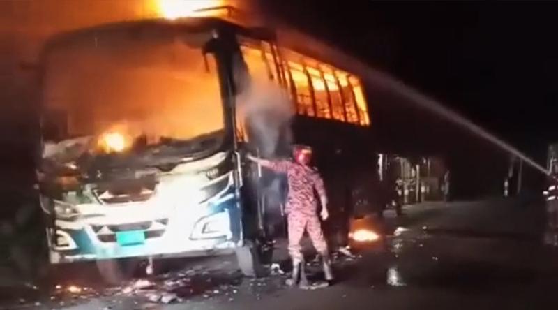 স্থানীয় সূত্রে জানা, সড়কের পাশে স্বর্ণা পরিবহন নামোর বাসটি পার্কিং করে রাখা হয়েছিল। মধ্য রাতে হঠাৎ ওই বাসটিতে অগ্নিসংযোগ করে দুর্বৃত্তরা। পরে মুহুর্তেই আগুন পুরো বাসে ছড়িয়ে পড়লে ফায়ার সার্ভিসের সদস্যরা ঘটনাস্থলে পৌঁছে আগুন নিয়ন্ত্রণে আনেন।