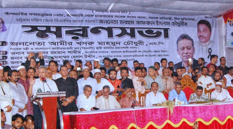 শুক্রবার (১৪ নভেম্বর) চট্টগ্রামের বাঁশখালীর জলদি পাইলট হাই স্কুল মাঠে দক্ষিণ জেলা বিএনপির সাবেক সভাপতি ও সাবেক মন্ত্রী প্রয়াত জাফরুল ইসলাম চৌধুরীর স্মরণসভায় প্রধান অতিথির বক্তব্যে তিনি এসব কথা বলেন। স্মরণসভায় অংশ নেওয়ার আগে নেতারা বাঁশখালীর গুণাগরিতে মরহুম জাফরুল ইসলাম চৌধুরীর কবর জিয়ারত, পুষ্পস্তবক অর্পণ ও দোয়া–মোনাজাত করেন।