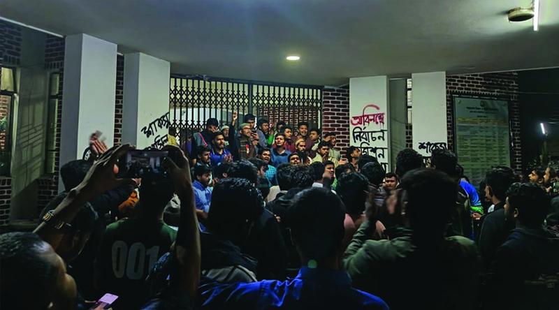 এদিকে উপাচার্যের ঘোষিত তারিখ প্রত্যাখ্যান করে বিক্ষোভ করেছেন শিক্ষার্থীরা। ১০ ডিসেম্বরের মধ্যে নির্বাচন চান শিক্ষার্থীরা। নির্বাচনের তারিখ ঘোষণার পরপরই উপাচার্যের কার্যালয়ের বাইরে বিভিন্ন স্লোগান দিয়ে বিক্ষোভ মিছিল করছেন শিক্ষার্থীরা।