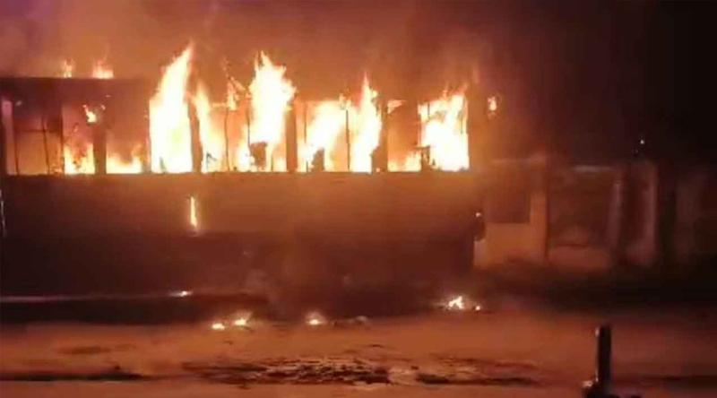রাজধানীর হাজারীবাগ বেড়িবাঁধে বাসে আগুন
