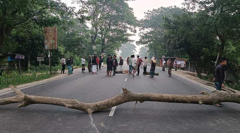 ঢাকা-বরিশাল মহাসড়কে গাছ ফেলে অবরোধ, যানচলাচল বন্ধ