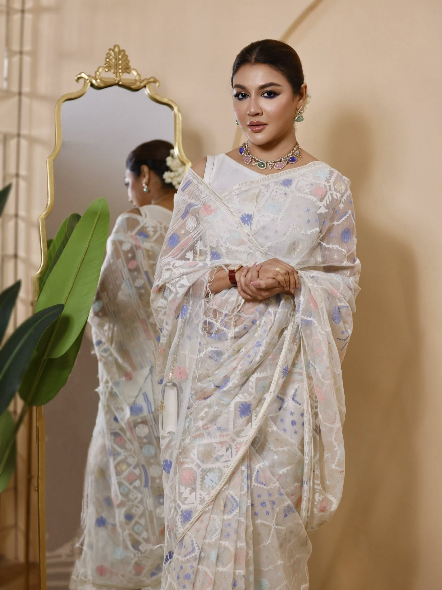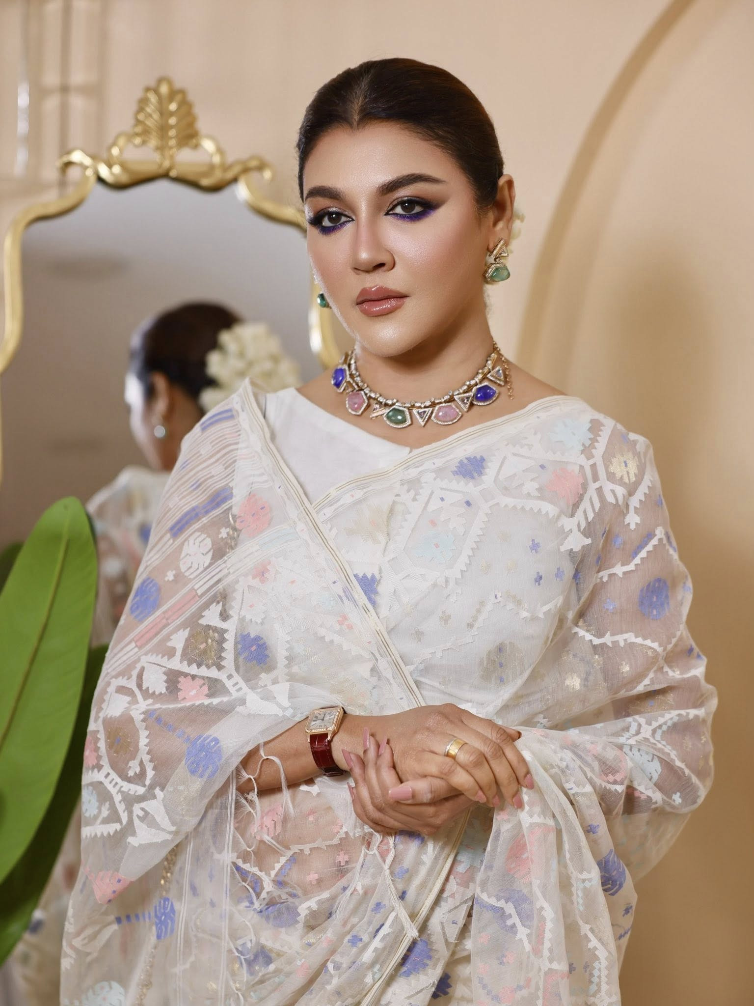 আজ দুপুরে সামাজিক মাধ্যমে একটি পোস্টে জয়া লিখেছেন, ‘জামদানি শাড়ি আমার কাছে সাংস্কৃতিক পরিচয়ের একটি অংশ। এ শাড়ির প্রতিটি সুতা, প্রতিটি নকশা আমাকে নিজের পরিচয় জানান দেয়। আমি অনুভব করি, এটি আমার আবেগের ভাষা, যা আমাকে আমার সংস্কৃতি ও ইতিহাসের সঙ্গে সংযুক্ত করে।'