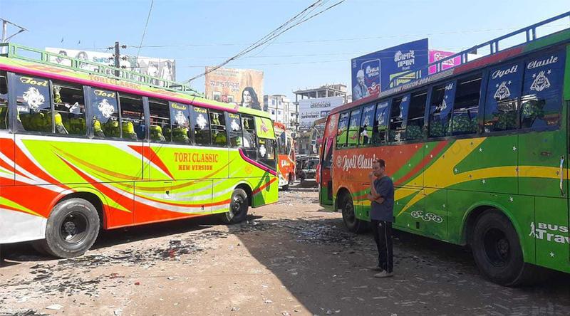 কেন্দ্রীয় নথুল্লাবাদ বাস মালিক সমিতির সাধারণ সম্পাদক মনোয়ার হোসেন অভিযোগ করেন, তাদের কমপক্ষে দুইশো বাস ভাঙচুরের পাশাপাশি কাউন্টারও ভেঙে লুটপাট করা হয়েছে। তিন কোটি টাকার ক্ষতির দাবি মালিক সমিতির এই নেতার। মালিক সমিতির সভাপতি মোশাররফ হোসেনও একই অভিযোগ। বাস কখন ছাড়া হবে তা বৈঠকের পর জানানো হবে বলে জানান তিনি।
