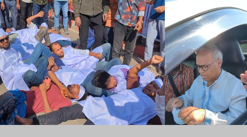 রুহুল কবির রিজভীর গাড়ি কাজিরহাট ব্রিজে পৌঁছালে নেতাকর্মীরা কাফনের কাপড় পরে সড়কে শুয়ে পড়েন। প্রায় আধঘণ্টা তারা সড়ক অবরোধ করে রাখেন।