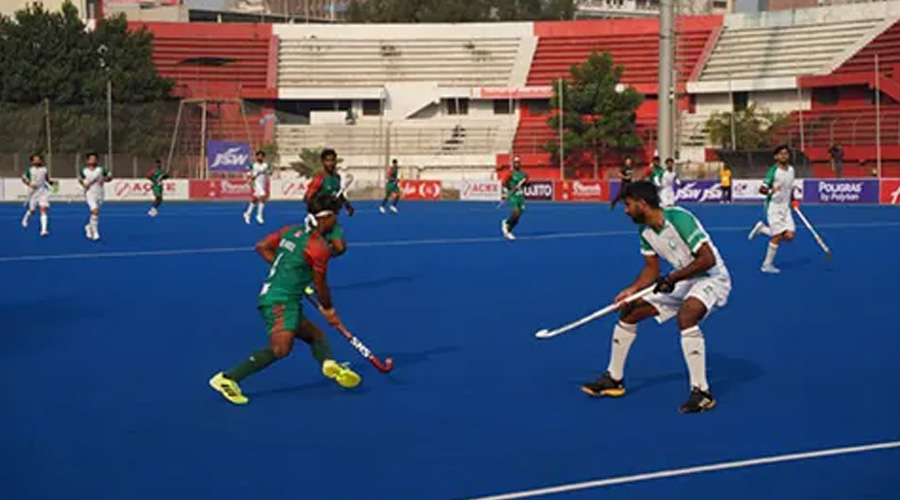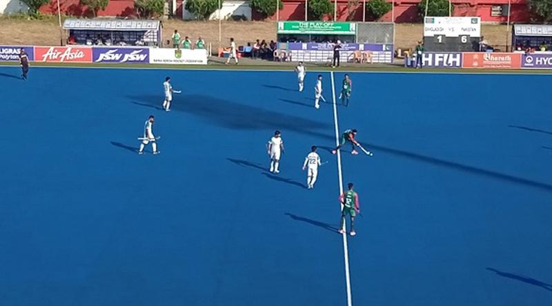 রোববার প্রথম কোয়ার্টারে শুরুটা ভালো করেছিল দুদলই। প্রথম থেকে সমানতালে লড়ে যাওয়া বাংলাদেশ প্রথমে খেই হারায় অষ্টম মিনিটে। প্রথম পেনাল্টি কর্নার পায় পাকিস্তান, গোল করেন সুফিয়ান খান। দশম মিনিটে আবারও পেনাল্টি কর্নার আদায় করে অতিথিরা, এবারও সুফিয়ানের গোল। ১৫ মিনিটে তৃতীয় পেনাল্টি কর্নারে গোল করে ৩-০ বানান রেহমান আব্দুল।