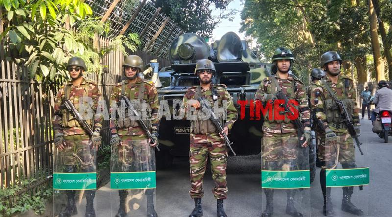 জুলাই গণঅভ্যুত্থানে সংঘটিত মানবতাবিরোধী অপরাধের মামলায় ক্ষমতাচ্যুত সাবেক প্রধানমন্ত্রী শেখ হাসিনার রায় ঘোষণাকে কেন্দ্র করে ট্রাইব্যুনাল ও সুপ্রিম কোর্ট এলাকায় নিরাপত্তা ব্যবস্থা জোরদার করতে সেনাবাহিনী ও বিজিবি মোতায়েন করা হয়েছে।