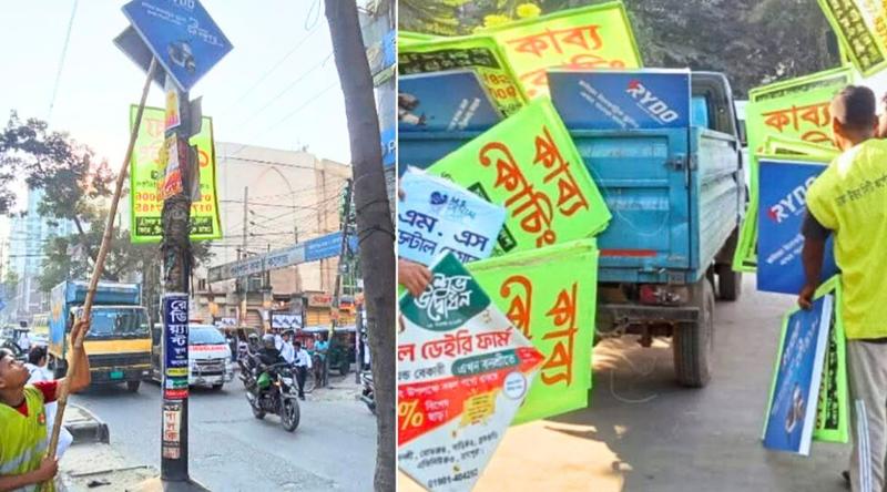 বনশ্রী-রামপুরায় অবৈধ সাইনবোর্ড উচ্ছেদে অভিযান চালাল ডিএনসিসি