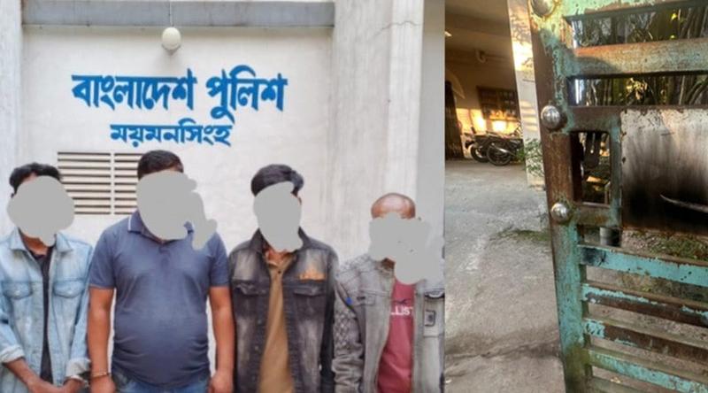 ঢাকা বিশ্ববিদ্যালয়ের কেন্দ্রীয় ছাত্র সংসদের সদস্য উম্মা উসওয়াতুন রাফিয়ার ময়মনসিংহের বাসার ফটকে অগ্নিসংযোগ ও ককটেল বিস্ফোরণের ঘটনায় ৪ জনকে গ্রেপ্তার করেছে ডিবি ও কোতোয়ালী থানা পুলিশ। শুক্রবার (২১ নভেম্বর) ভোরে ও দিনে নগরীর বিভিন্ন স্থান থেকে তাদের গ্রেপ্তার করা হয়।