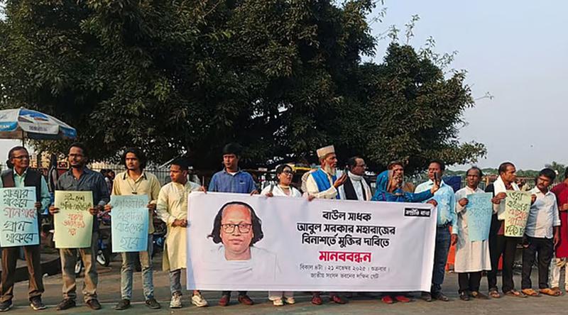 বাউলশিল্পী আবুল সরকারের মুক্তির দাবিতে মানববন্ধন