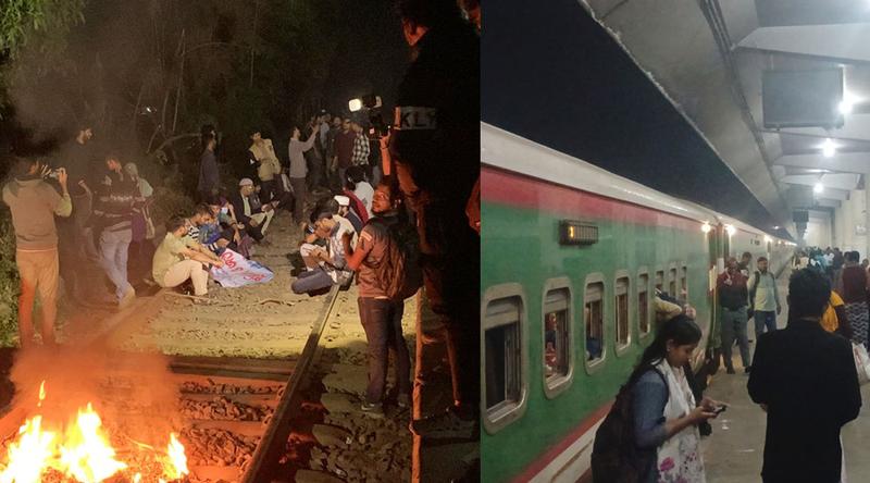 ৪৭তম বিসিএসের লিখিত পরীক্ষা পেছানোর দাবিতে রাজশাহীতে রেলপথ অবরোধ