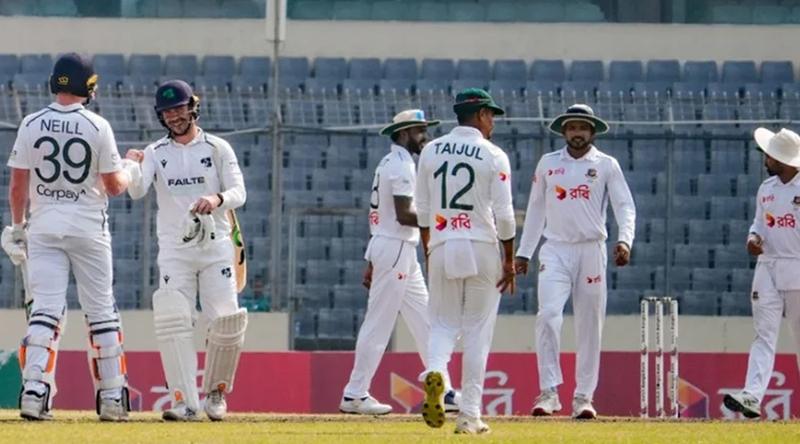 ৬ উইকেটে ১৭৬ রান তুলে গতকাল চতুর্থ দিন শেষ করেছিল আয়ারল্যান্ড। তখনই জয়ের সুবাস পেতে শুরু করেছিল নাজমুল হোসেন শান্ত’র দল। তবে সিরিজ নিশ্চিত করতে তাদের লম্বা সময় অপেক্ষা করতে হয়েছে। আগেরদিন টপ ও মিডল অর্ডার ব্যাটাররা ৫৪ ওভার খেলেছিল, বিপরীতে আজ তাইজুল-হাসানদের বিপক্ষে দাঁতে দাঁত চেপে বাকি ৪ ব্যাটার খেললেন ৫৯ ওভার। এর আগে সিলেট টেস্টে বাংলাদেশ ইনিংস ব্যবধানে জিতেছিল। ফলে লাল বলের সিরিজ শেষ হলো ২-০ ব্যবধানে।
