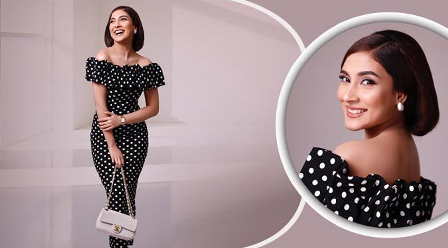পোলকা ডটের কালো পোশাকে মুগ্ধতা ছড়ালেন অভিনেত্রী মেহজাবীন