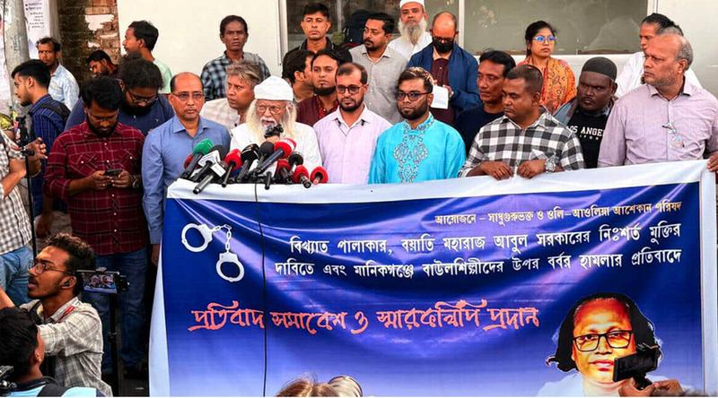 সোমবার (২৪ নভেম্বর) রাজধানীর জাতীয় প্রেস ক্লাবের সামনে বাউলশিল্পী আবুল সরকারের মুক্তির দাবিতে সাধুগুরুভক্ত ও ওলি-আওলিয়া আশেকান পরিষদের আয়োজিত প্রতিবাদ সমাবেশ ও স্মারকলিপি প্রদান অনুষ্ঠানে এসব কথা বলেন কবি ও চিন্তক ফরহাদ মজহার।
