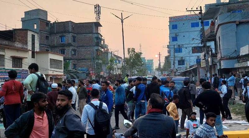 আন্দোলনকারীরা। পরে বিক্ষুব্ধ ছাত্র জনতা সড়কে বাঁশ ফেলে ব্যারিকেড তৈরি করেন। ফলে সড়কটিতে যানচলাচল বন্ধ হয়ে যায়।