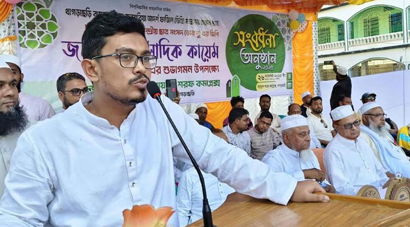ঢাকা বিশ্ববিদ্যালয় কেন্দ্রীয় ছাত্র সংসদের (ডাকসু) ভিপি সাদিক কায়েম বুধবার (২৬ নভেম্বর) প্রথমবারের মতো নিজ জেলা খাগড়াছড়িতে আসেন। বিকেলে তার প্রথম শিক্ষা প্রতিষ্ঠান খাগড়াছড়ি বায়তুশ শরফ কমপ্লেক্সে তাকে আনুষ্ঠানিক সংবর্ধনা দেওয়া হয়।